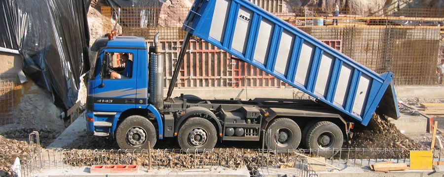 Ein moderner und effizienter Fuhrpark sorgt dafür, dass die Baumaterialien pünktlich und sicher auf die Baustellen gelangen.
