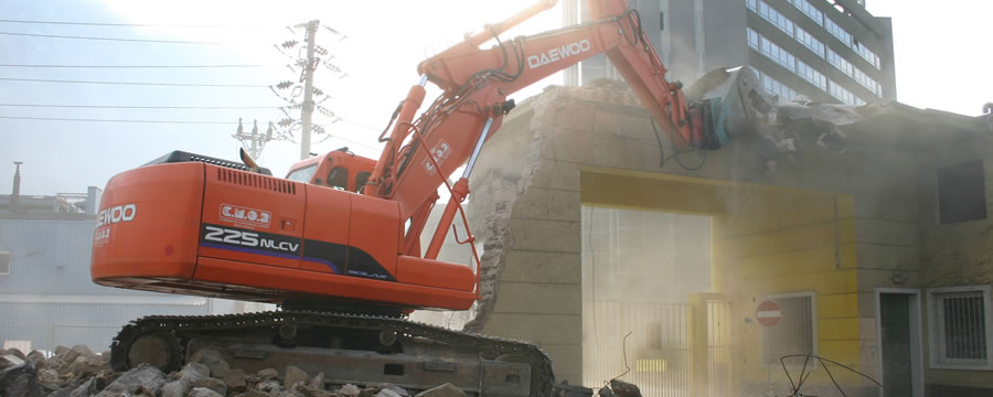 Zu den Abbrucharbeiten gehören sämtliche Arbeiten im Hoch- und Tiefbau und die gleichzeitige Aufarbeitung und Wiederverwertung der Materialien vor Ort.