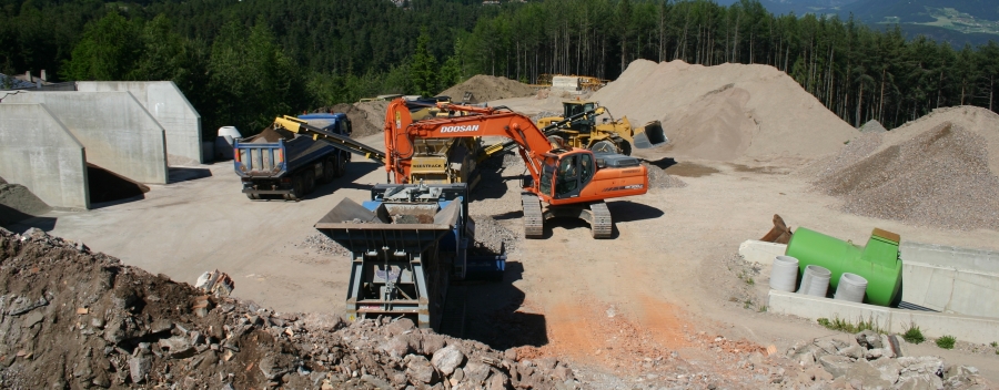Seit dem Jahr 2005 wird in unserem Recyclingwerk in der „Handwerkerzone Klobenstein“ Bauschutt-, Asphalt- und Betonmaterialien in unterschiedlichsten Körnungen wiederhergestellt.