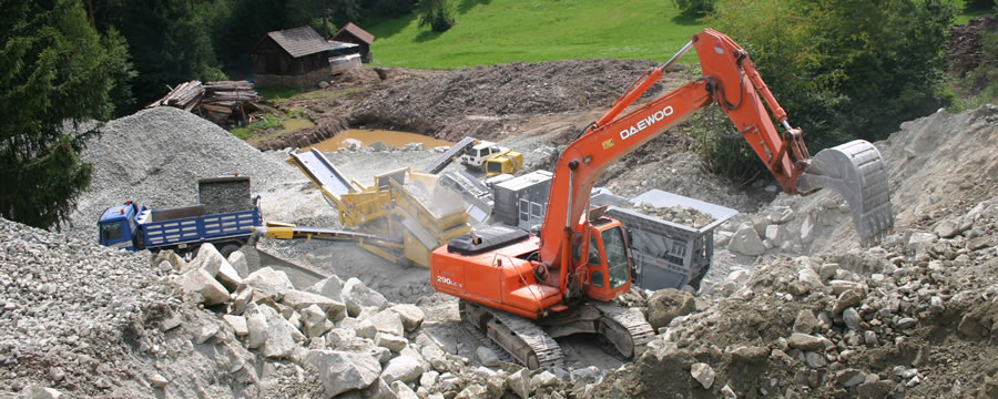 Seit dem Jahr 2008 wird in unserem Schotterwerk in „Klobenstein“ Gesteinsmaterial und Bachmaterial in unterschiedlichsten Körnungen hergestellt. Im Brechwerk werden Sand und Schotter aufbereitet, die dann als Zuschlagstoffe für die Betonherstellung bzw. im Straßen- und Tiefbau zum Einsatz kommen. Auch hier sind alle Produkte CE-Zertifiziert.