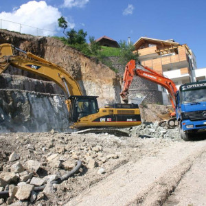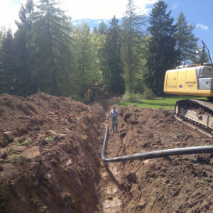 Abbruch und Aushubarbeiten der Tiefgarage und des neuen Zivilschutzzentrum Ritten